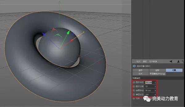 创建球体、圆环并设置参数;