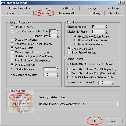 N自定义(Customize)------首选项(Preferences)---视口(Viewports)---选择驱动(Choose Driver)---硬件(OpenGL)---OK